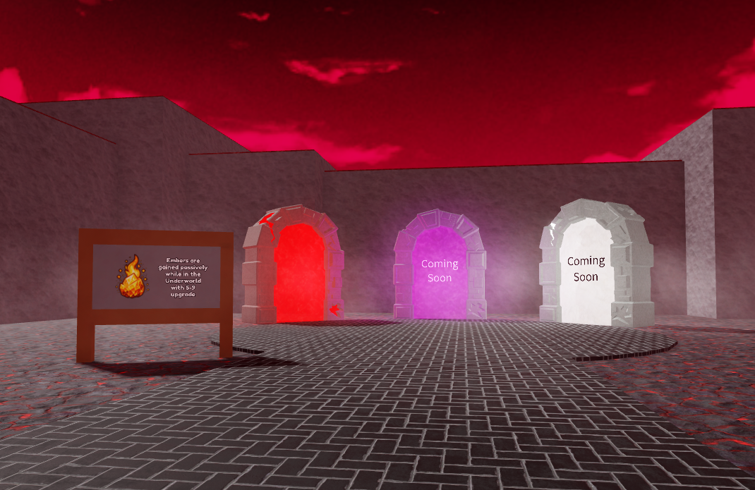 Welcome to the underworld. There are three portals that will take you to separate segments of the world. At the moment, only the red portal is working.