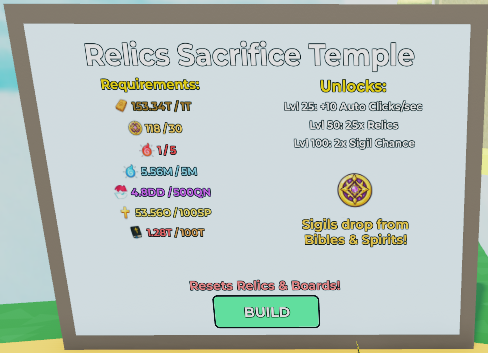 Here is where you can start collecting Relics! You must click on the board to gain Relics.