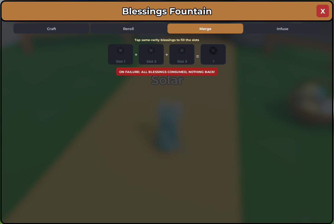 You can take three blessings of the same rarity and attempt to merge them together to create a single, much stronger blessing.