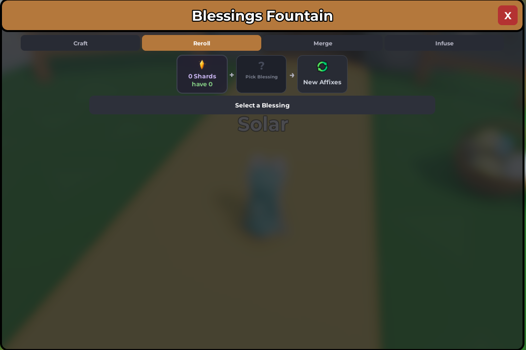 For the cost of some shards, you can reroll the bonus granted by your blessing. You can also lock bonuses you want to keep.